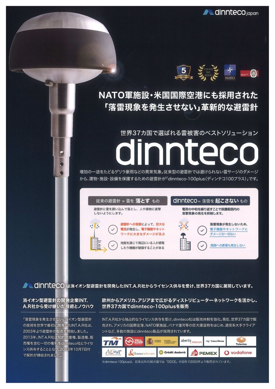 増加の一途をたどるゲリラ豪雨などの異常気象。従来型の避雷針では避けられない雷サージのダメージから、建物・施設・設備を保護するための避雷針が「dinnteco-100plus(ディンテコ100プラス)」です。