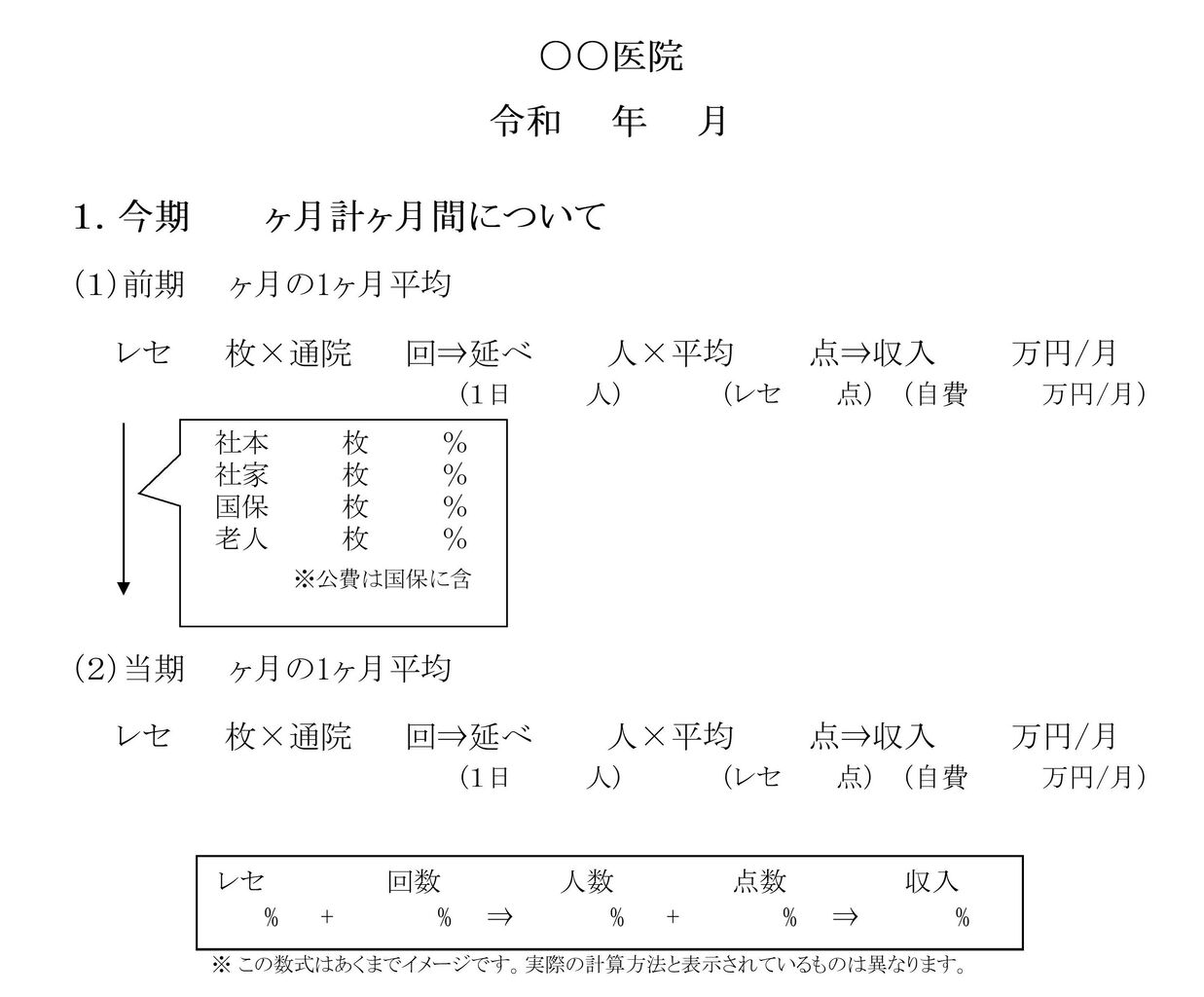レセ枚数×通院回数=患者数/月×平均点数=収入
