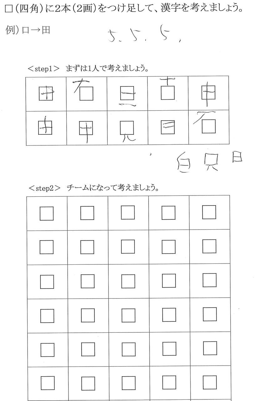 1.口(四角)に2本線を足して漢字を考えて下さい。